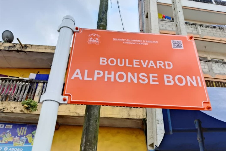 Dans toutes les communes d’Abidjan, Koumassi, Treichville… , on voit des petits panneaux sur des poteaux métalliques ou collés au mur. Il y en a de trois couleurs : orange, vert et bleu. Les panneaux bleus indiquent les rues, les verts sont pour les avenues et les oranges pour les boulevards. Chaque panneau porte le nom d’une personnalité politique, sportive, culturelle, etc.
