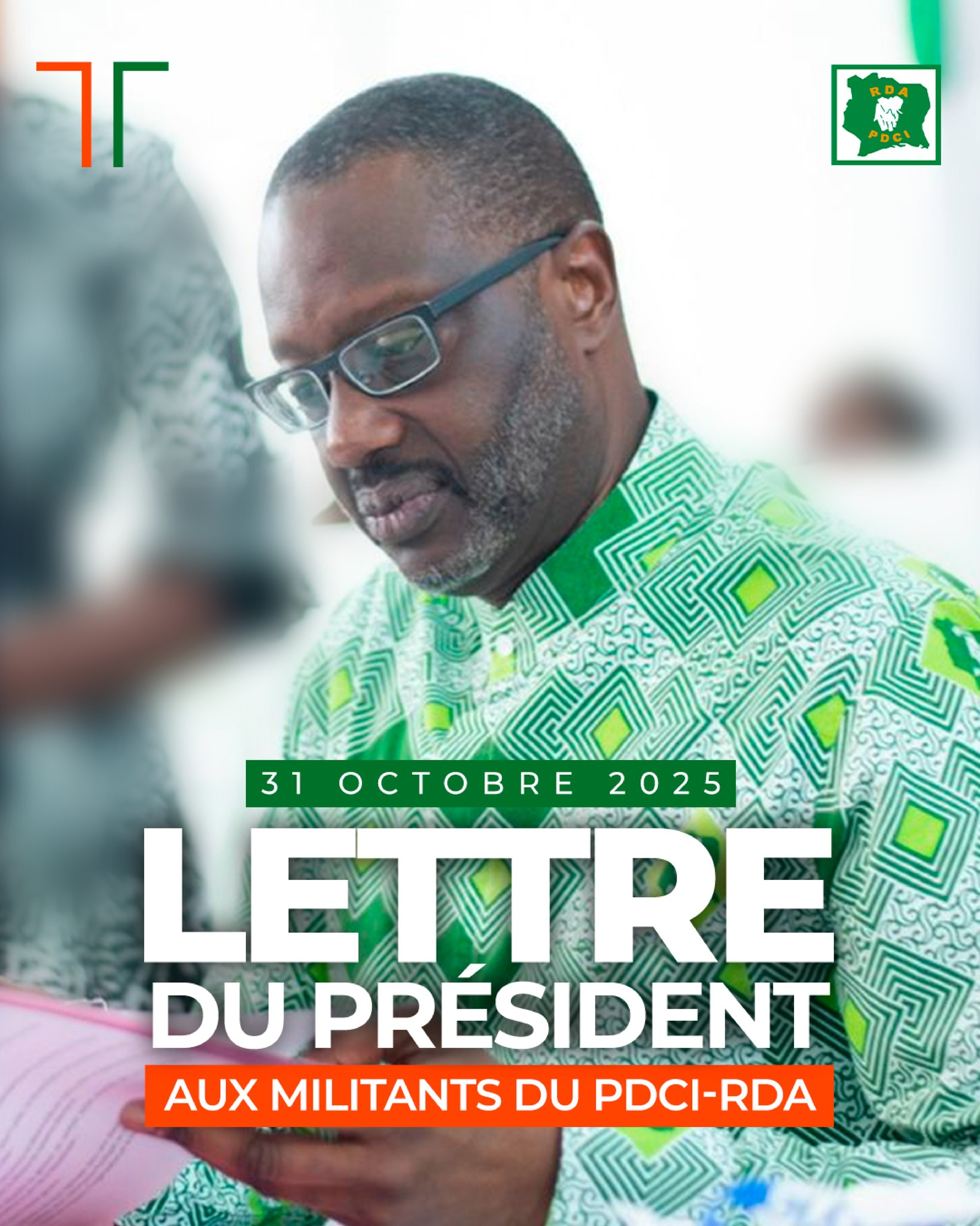 POLITIQUE Lettre du président Tidjane Thiam aux militantes et militants du PDCI By iciabidjan - 31 octobre 2025 0 Share FacebookTwitterPinterestWhatsAppLinkedinE-mailPrintTelegramFlip Partager : Cliquez pour partager sur Facebook(ouvre dans une nouvelle fenêtre) Facebook Cliquer pour partager sur X(ouvre dans une nouvelle fenêtre) X TIDJANE THIAM : UNE LONGUE ABSENCE QUI FRAGILISE LE PDCI ET ACCENTUE LES DIVISIONS ?Date8 octobre 2025Par rapport àPOLITIQUERetour annoncé de Tidjane Thiam : La direction du Pdci-Rda dément la rumeurDate21 août 2025Par rapport àPOLITIQUELe retour de Tidjane Thiam est une exigence nationaleDate5 septembre 2025Par rapport àIdées